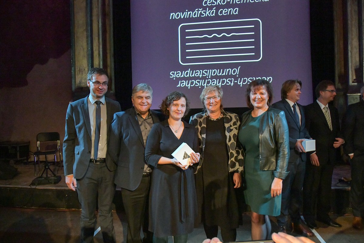 Leipzig, 01.11.2019 – Im UT Connewitz Leipzig wurden am Freitagabend durch den Deutsch-Tschechischen Zukunftsfonds sowie die Journalistenverbände in Deutschland (DJV) und Tschechien (Syndikát novinářů) acht Beiträge heraus-ragender Journalistinnen und Journalisten ausgezeichnet. Vor über 200 Gästen, darunter der ehem. tschechische Außenminister Karel Scharzenberg und Roland Jahn, Bundesbeauftragter für Stasi-Unterlagen, wurden die Preisträgerinnen und Preisträger für eine klischeefreie und differenzierte Wahrnehmung des jeweiligen Nachbarlandes geehrt, die ein besseres Verständnis zwischen Deutschen und Tschechen fördert. In den Kategorien Text, Audio und Multimedia gingen die Preise an: Oliver Hach (Freie Presse Chemnitz), Adéla Tallisová Dražanová (Reportér magazín), Jacqueline Hene (MDR Sachsen), Petr Dudek/ Jan Pokorný/ Petr Pospíšil/ Ondřej Suchan/ Martin Veselovský (Český rozhlas, Radiožurnál), Dennis Wagner (ARD) und Jiří Fiedor (Česká televize (ČT2). Den Sonderpreis „Milena Jesenská“ erhielt Kirill Ščeblykin (Deník N) für einen aktuellen Beitrag, der sich der Zivilcourage, Verständigung und Toleranz widmet. Die insgesamt sieben Preise sind mit je 2.000 Euro dotiert. Eine Sonderauszeichnung wurde darüber hinaus als Ehrenpreis für langfristige herausragende journalistische Tätigkeiten an Alena Wagnerová verliehen.